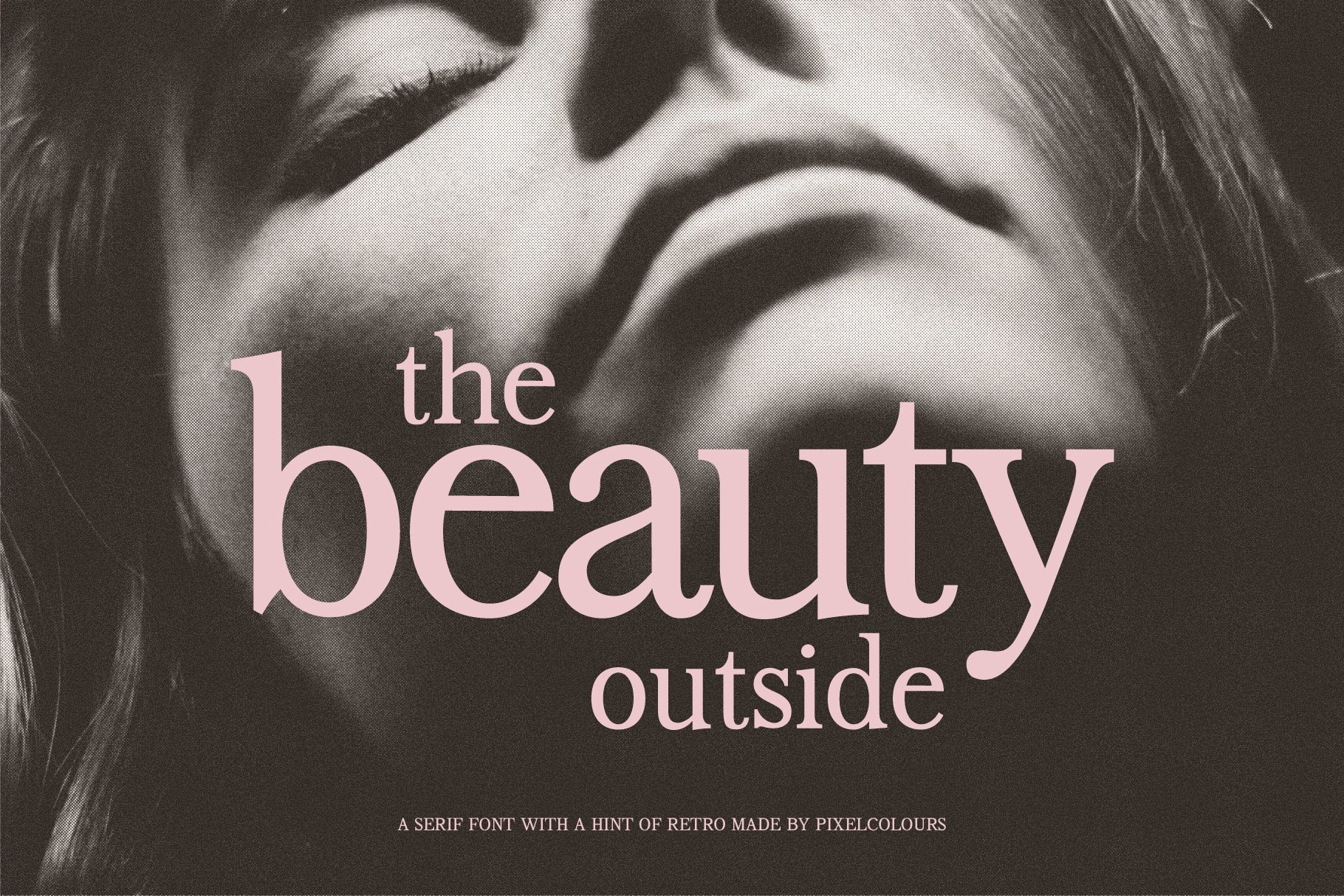 Beauty Outside is a serif font with a hint of retro. Includes a display font for larger words and a text font optimized for reading. Use them alone or pair them together to create professional compositions and designs.