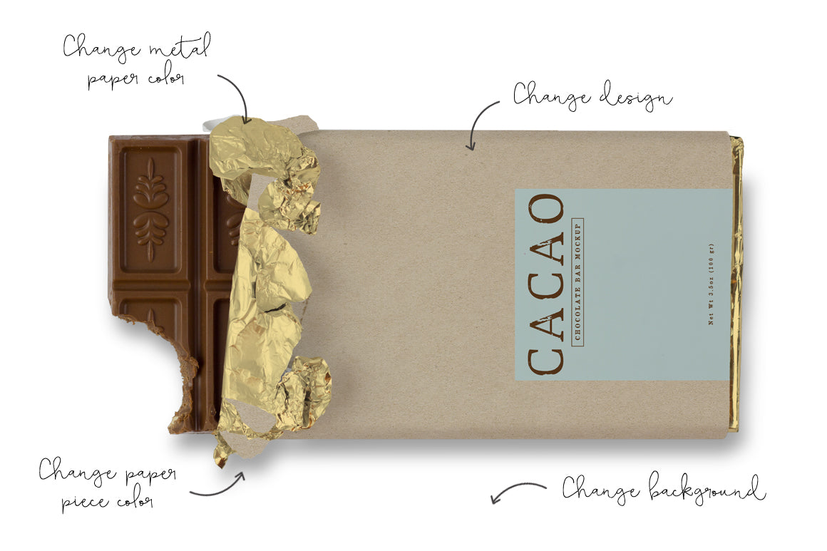 Yuummmm is all what you can say when you see this Chocolate Bar Mockup! Customize it with your own designs, fonts, patterns, etc. and make your own chocolates! Change design, background, metal and wrap paper color.