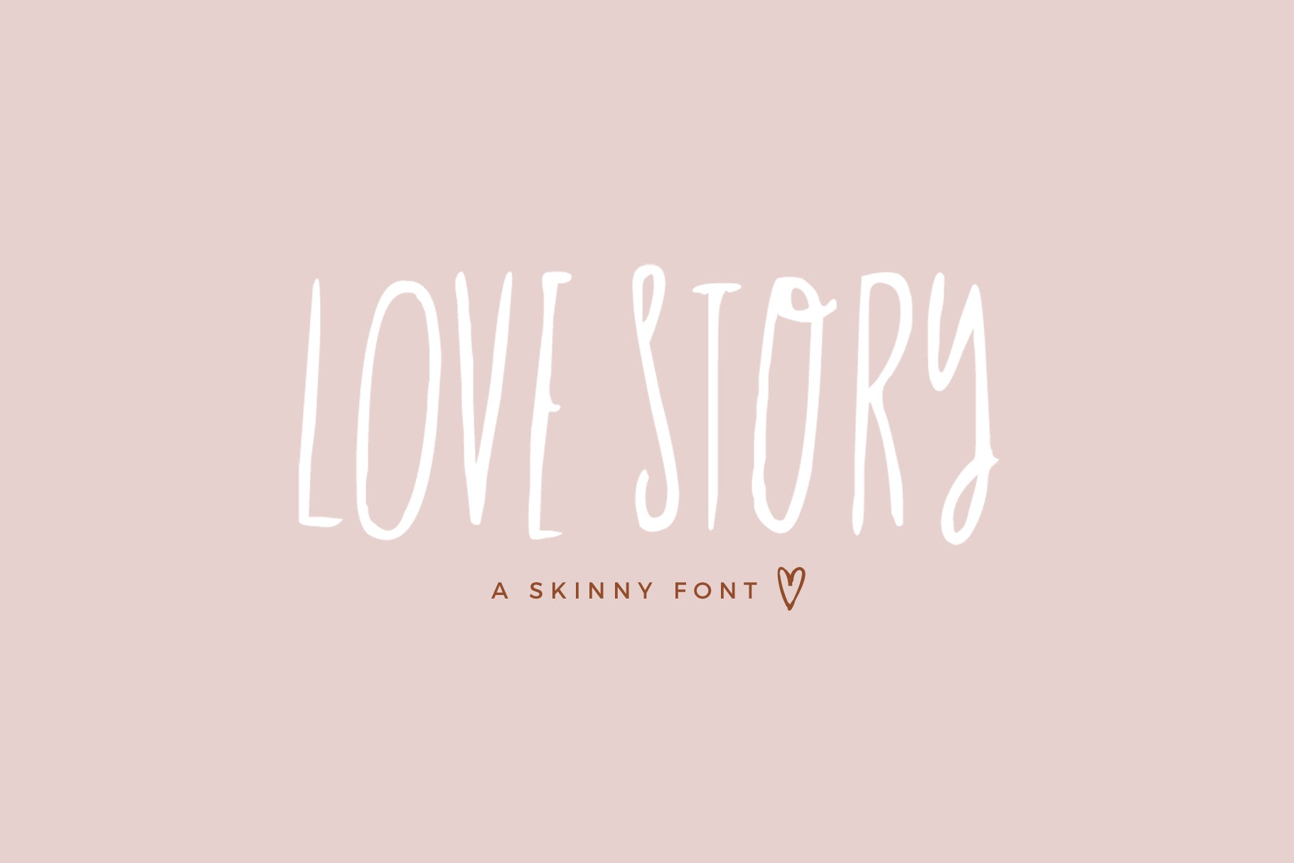 Love Story is a modern skinny font that combines regular and script characters for an imperfect, cute style.