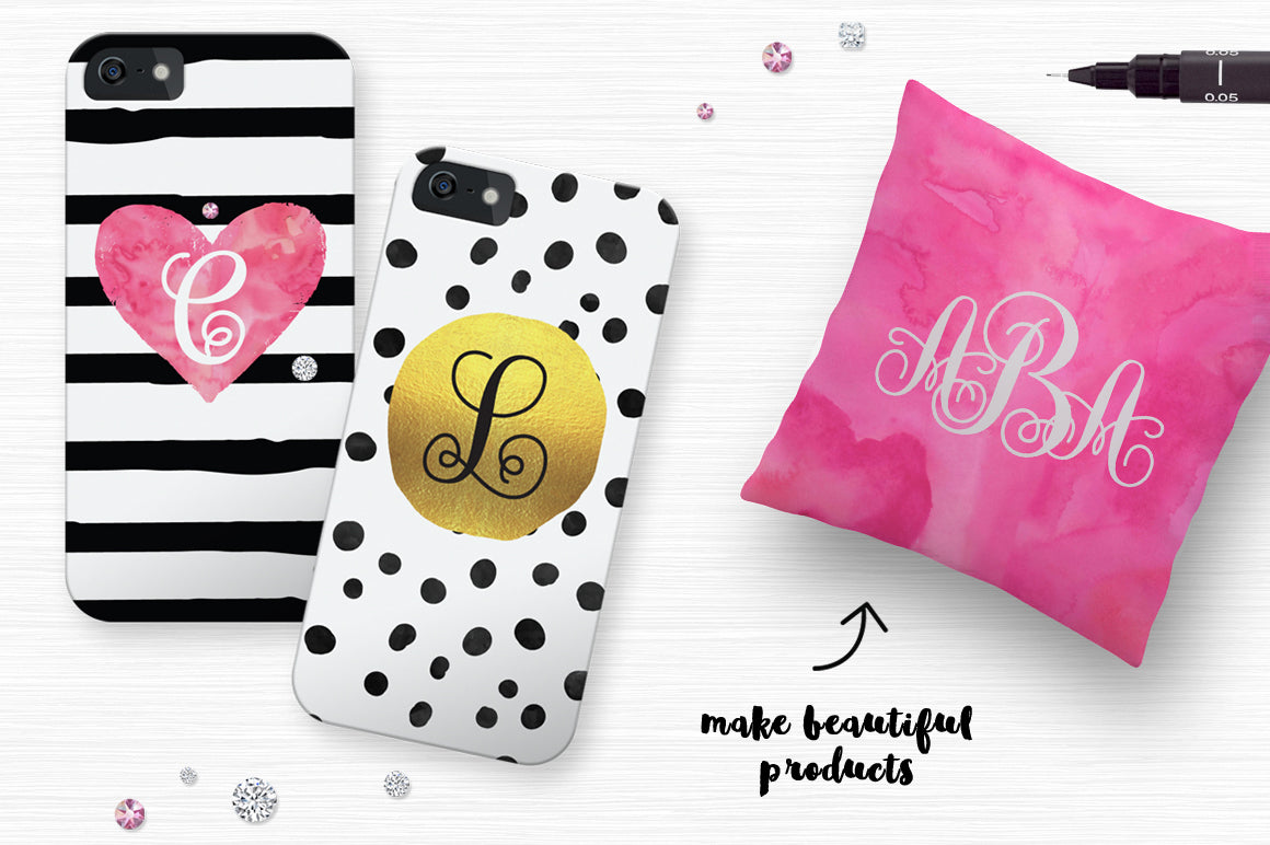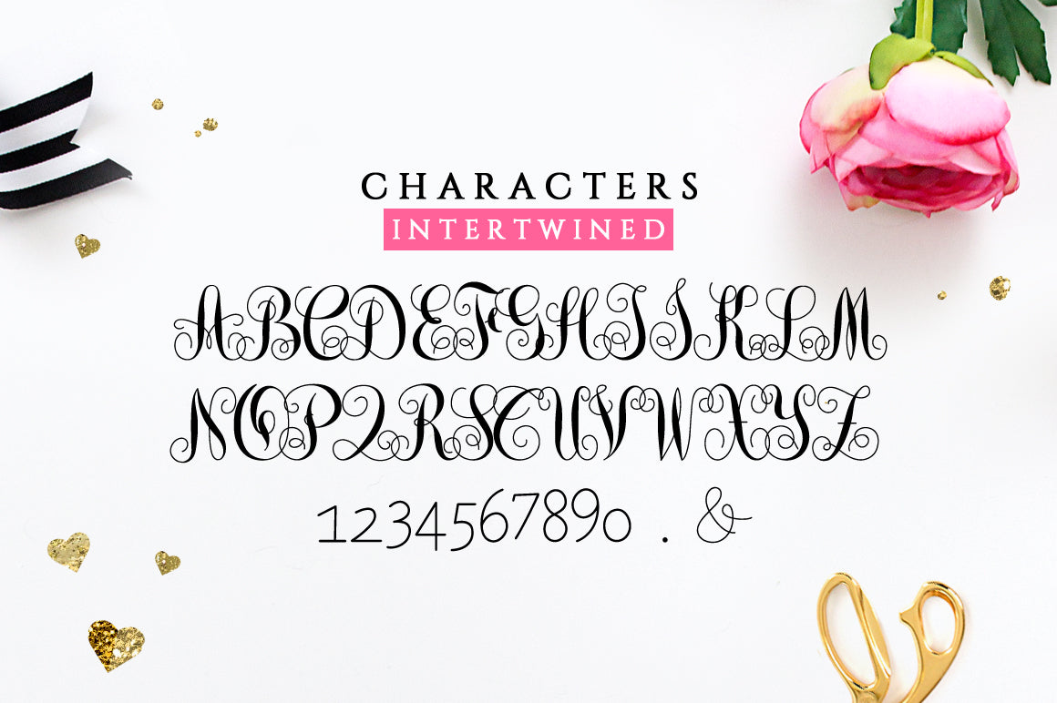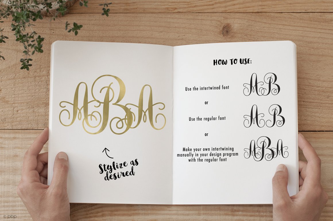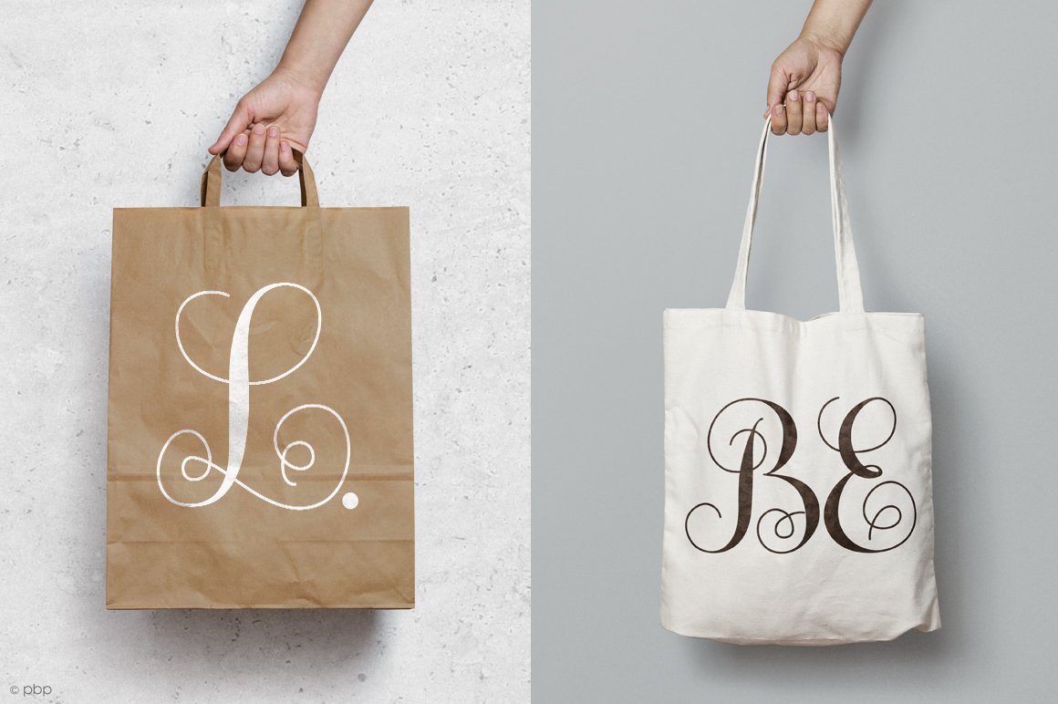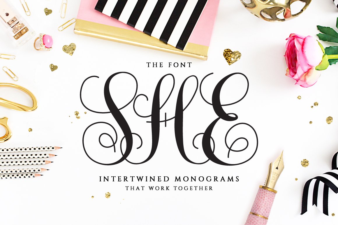 Monogram She is a beautiful intertwined monogram font. Each letter has being hand drawn with the purpose of making them join each other. This interwoven font looks great in personalized products like cards, mugs, shirts, cell phone cases, stationery. Needless to say, is PERFECT for weddings! Make invitations, favours, napkins, decorations or any project with initials.