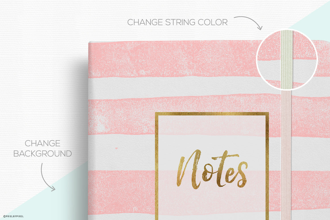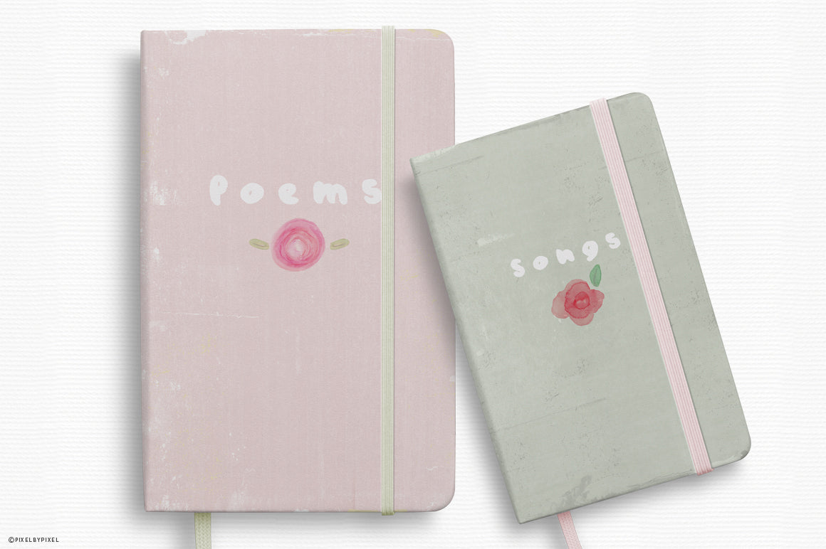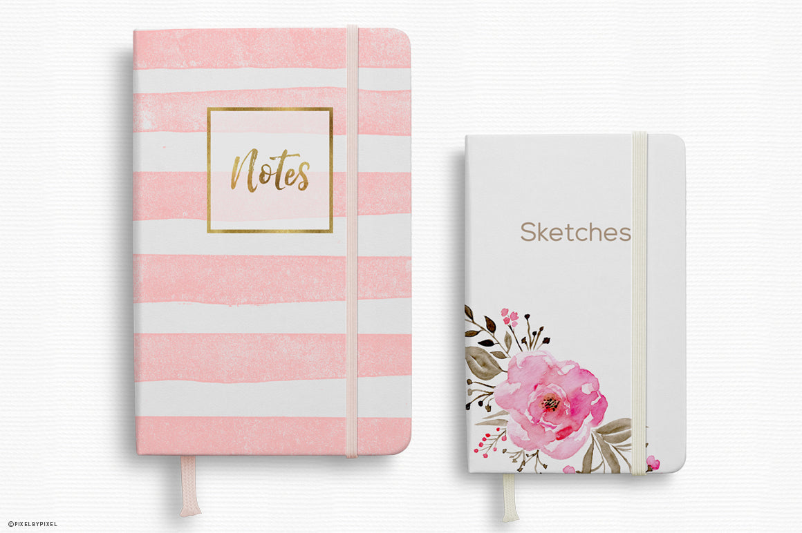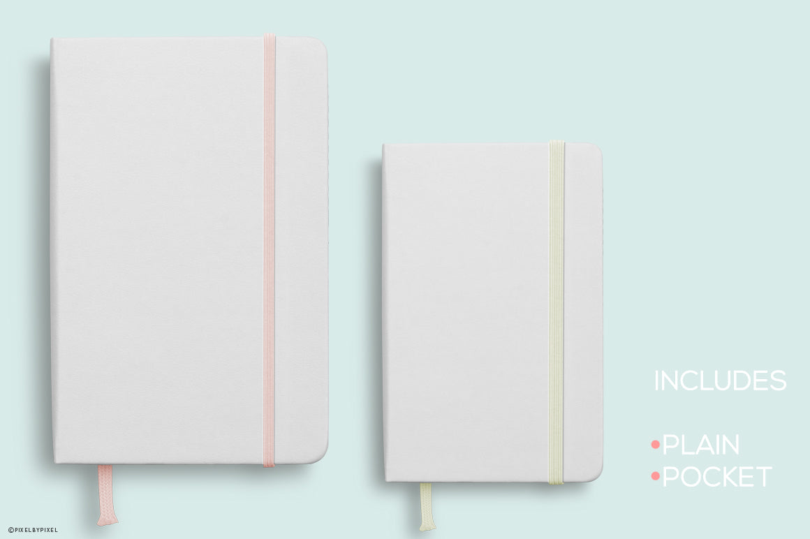 A lovely set of 2 Notebook Mockups to showcase your artwork. Place your illustrations, fonts, patterns, textures, etc. Anything looks wonderful in a notebook mockup.