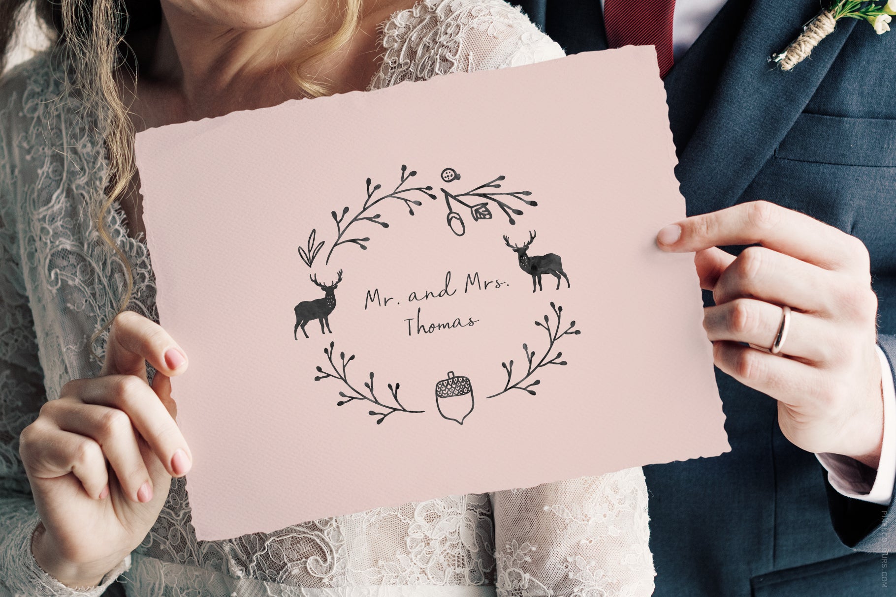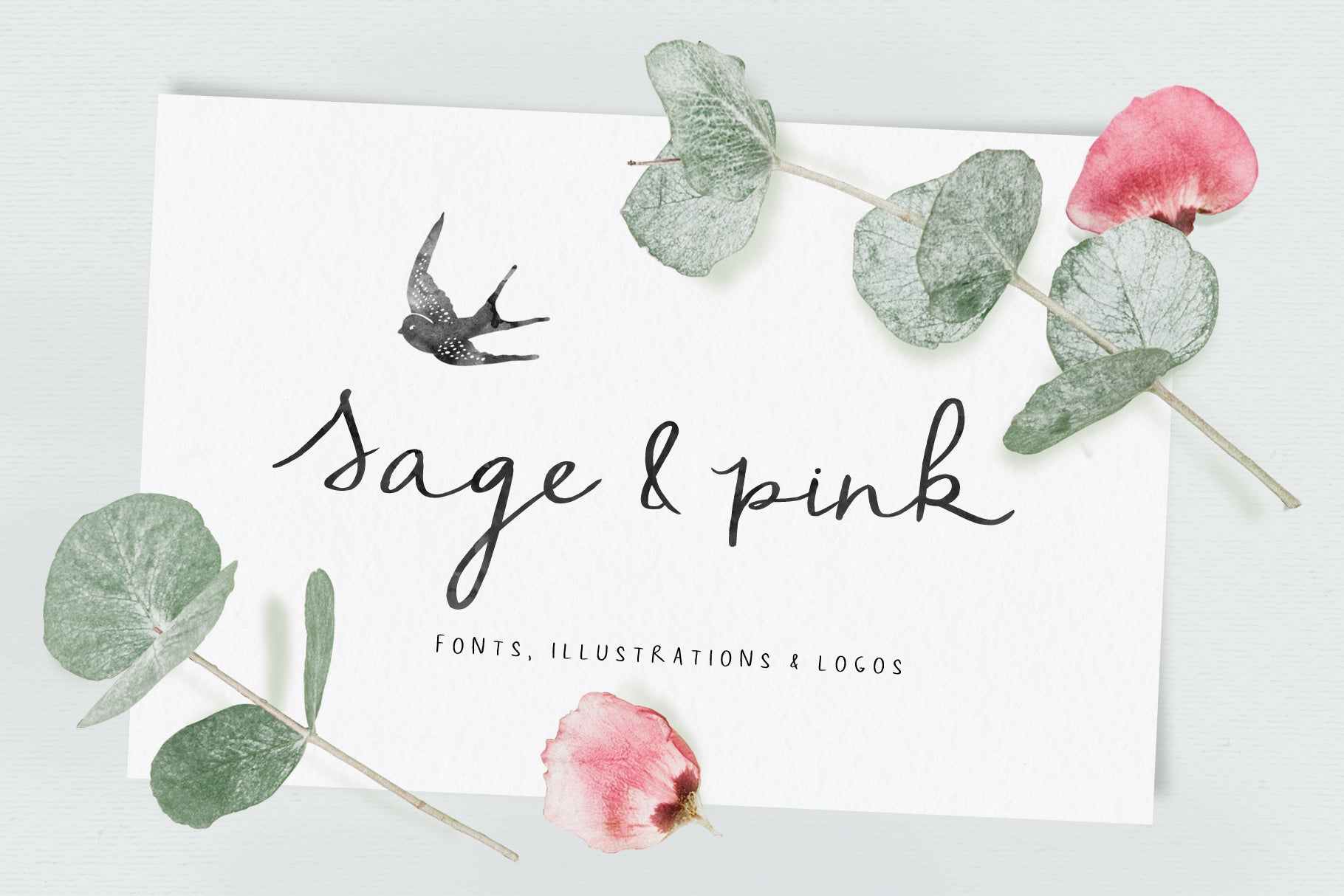Sage and Pink is a beautiful font family loaded with cute fonts, hand drawn illustrations and premade logo templates. It was lovingly designed to look as close as possible to a natural handwriting. Create professional logos, quotes, wedding invitations, stationery, banners for blogs or websites, instagram or pinterest posts, etc.