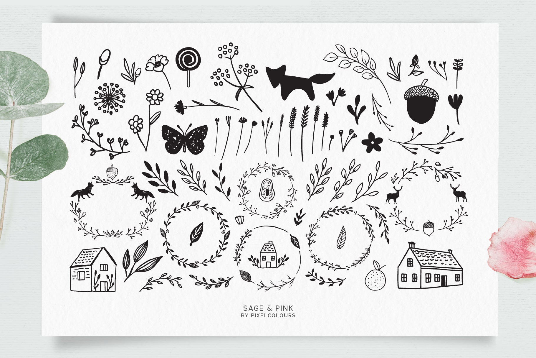 - Sage & Pink Plain: A second style that allows you to create different feels with the same hand drawn finish.