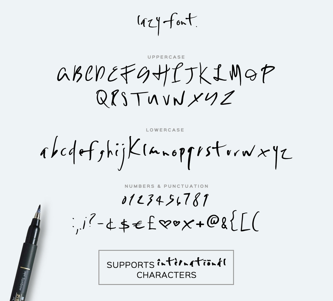 Lazy Font is a handwriting freestyle font and the strokes look like fresh ink. This font is great for informal, handmade-like designs!